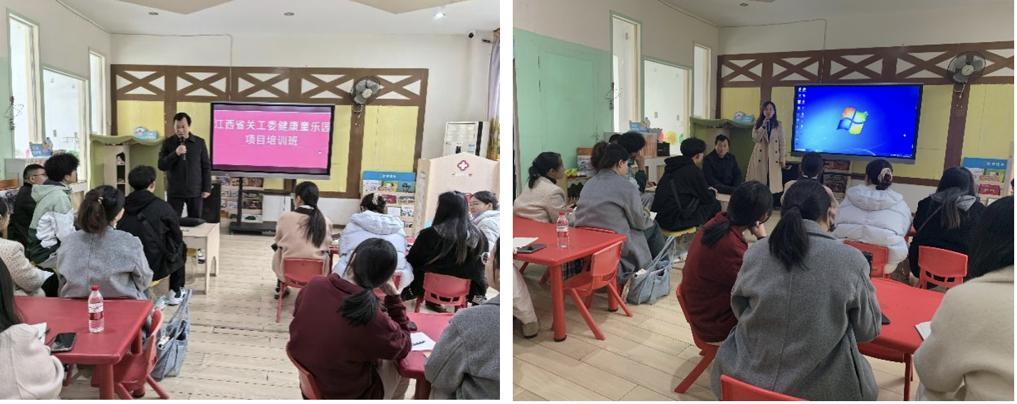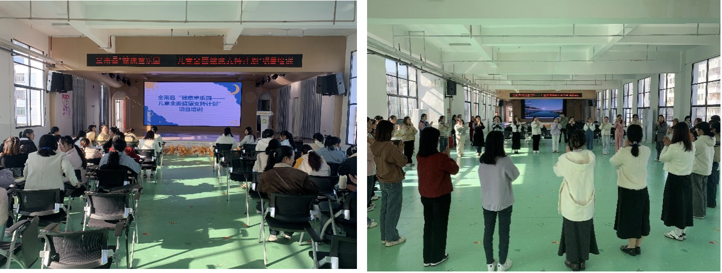 12月5日,健康童乐园项目培训在江西省永修县星火花苑幼儿园开展,永修县教育局曾庆茂主任致辞,永修县、婺源县等16所幼儿园16位老师参加培训。培训现场收集老师在教学中遇到的问题,并进行讨论答疑和互动分享,延伸了项目宽度。参与培训的老师表示,培训内容专业实用,收获颇多。