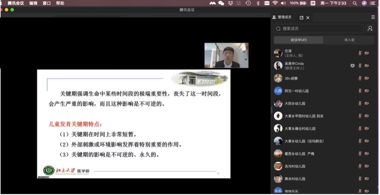 12月9日,健康童乐园项目培训在线上开展,四川省色达县36位老师参加培训。马军教授就0-6岁儿童发展关键期健康教育的重要性进行深入解读。在童乐园课程方面刘芳老师详细拆解了健康童乐园物资及课程。经过培训,项目地幼儿园教师不仅能独立开展健康童乐园课程,同时能够依托现有课程创新开发新的课程案例,促进项目质量进一步的提升。
