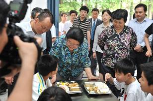 在营养厨房的烹饪间里,顾秀莲主任向厨师们了解了新设备的使用情况。过去做一顿饭需要四个小时,现在四十分钟就能完成,不仅快捷还很节能。孩子们吃上热乎乎的饭菜不再成问题了。顾秀莲主任对湖北省“春苗营养厨房”的实施效果给予了充分肯定。正是由于各级省市部门的高度重视,实施人员的扎实工作,“春苗营养计划”的项目才启动快,效果好。