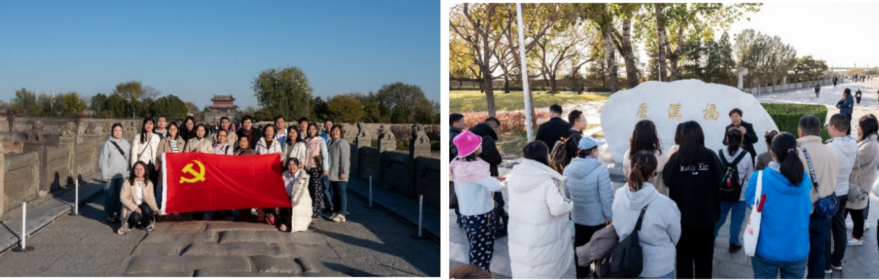 卢沟桥--见证了中华民族屈辱与抗争,在党史老师的带领下,大家沿着桥面缓缓前行,仔细观察桥身的石狮与斑驳的石板,聆听1937年“七七事变”的历史风云,老师为大家生动的还原了当时日军蓄意挑起事端、中国军队奋起抵抗的壮烈场景,让大家深刻认识到“七七事变”作为全民族抗战起点的重大意义。