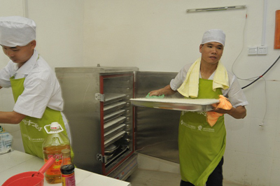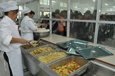 在陕西和重庆,寄宿制学校厨房以往使用的燃料主要是煤,由于煤炭价格近年来持续上涨,学校需要负担的成本越来越重。以重庆市綦江县永新镇三会小学为例,该校共有学生535人,每天在学校就餐的学生和教师人数约为400人。据黄利忠校长介绍,过去学校厨房用大灶蒸饭,每蒸一次饭耗时两个多小时,需要烧80到100斤煤,合100多块钱。而使用“春苗营养厨房”配备的功率为12千瓦的蒸饭车做一次饭只需要40分钟左右,不但节约时间和人力,还把每做一次饭的成本降到五六块钱。算下来,光使用蒸饭车这一项,一年就可以为学校节约五六万元。
