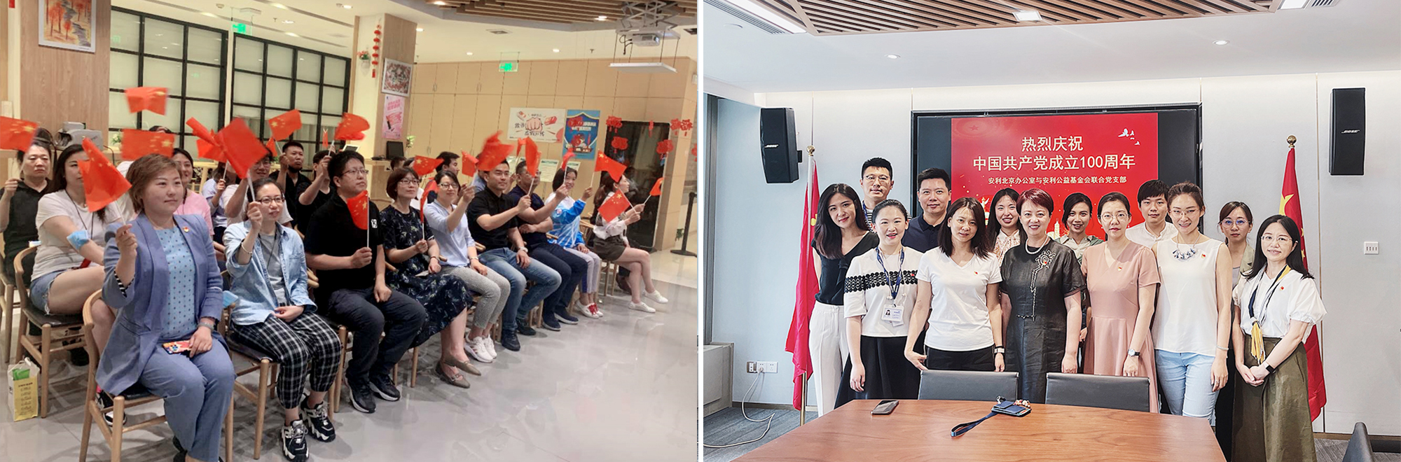 7月1日早8点,安利北京分公司党委组织党员、团员和员工通过线上、线下方式观看“庆祝中国共产党成立100周年大会”直播,聆听习近平总书记重要讲话。